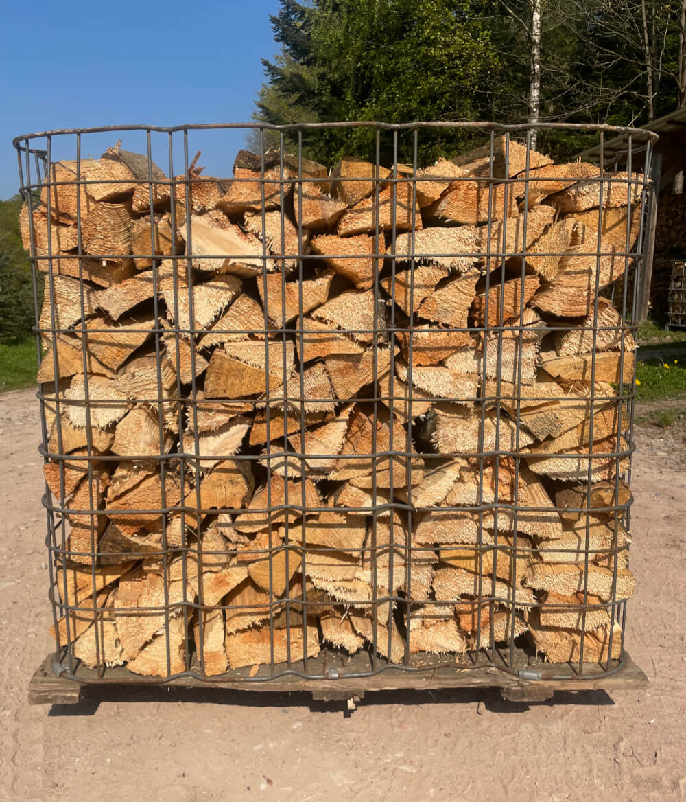 Die Gitterbox ist nicht Bestandteil der Lieferung. Sie erhalten das Holz geschüttet.