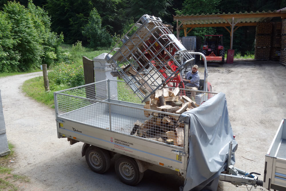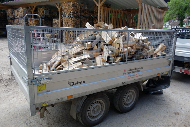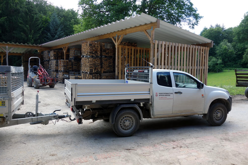 Wir liefern Kaminholz ab einer Menge von zwei Raummetern in einem Umkreis von etwa 20 km bis 25 km rund um die Forstverwaltung Spiegelsberge. Nach telefonischer Terminvereinbarung können Sie Ihr Kaminholz auch bei uns am Hof abholen, auch geringere Mengen sind dann abholbar.