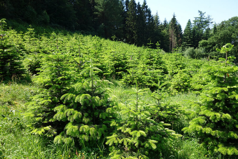 Eine große Auswahl an Nordmanntannen und Blaufichten stellen wir für Sie bereit. Auf Wunsch können die Bäume auch selbst in unserer Schonung geschlagen werden.