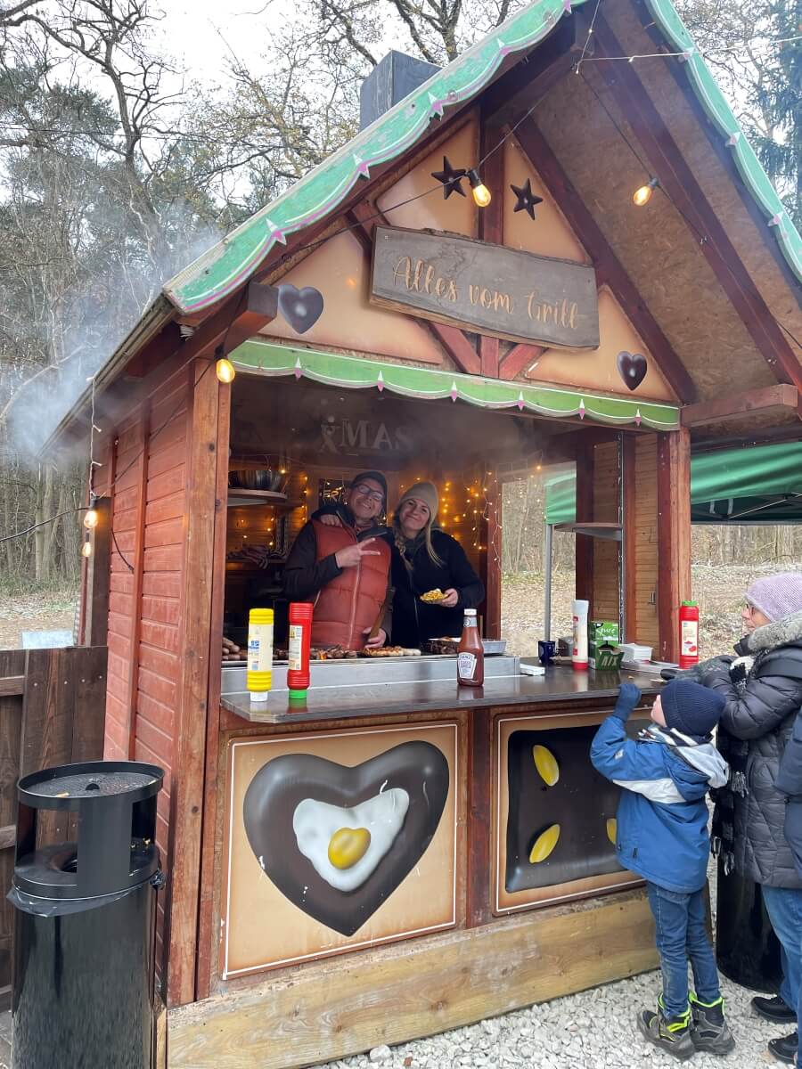 Am dritten und vierten Adventswochenende Sonntags bereiten wir ab mittags (Wild-)Bratwurst, Rehwildspieße, Pommes und Stockbrot zu.